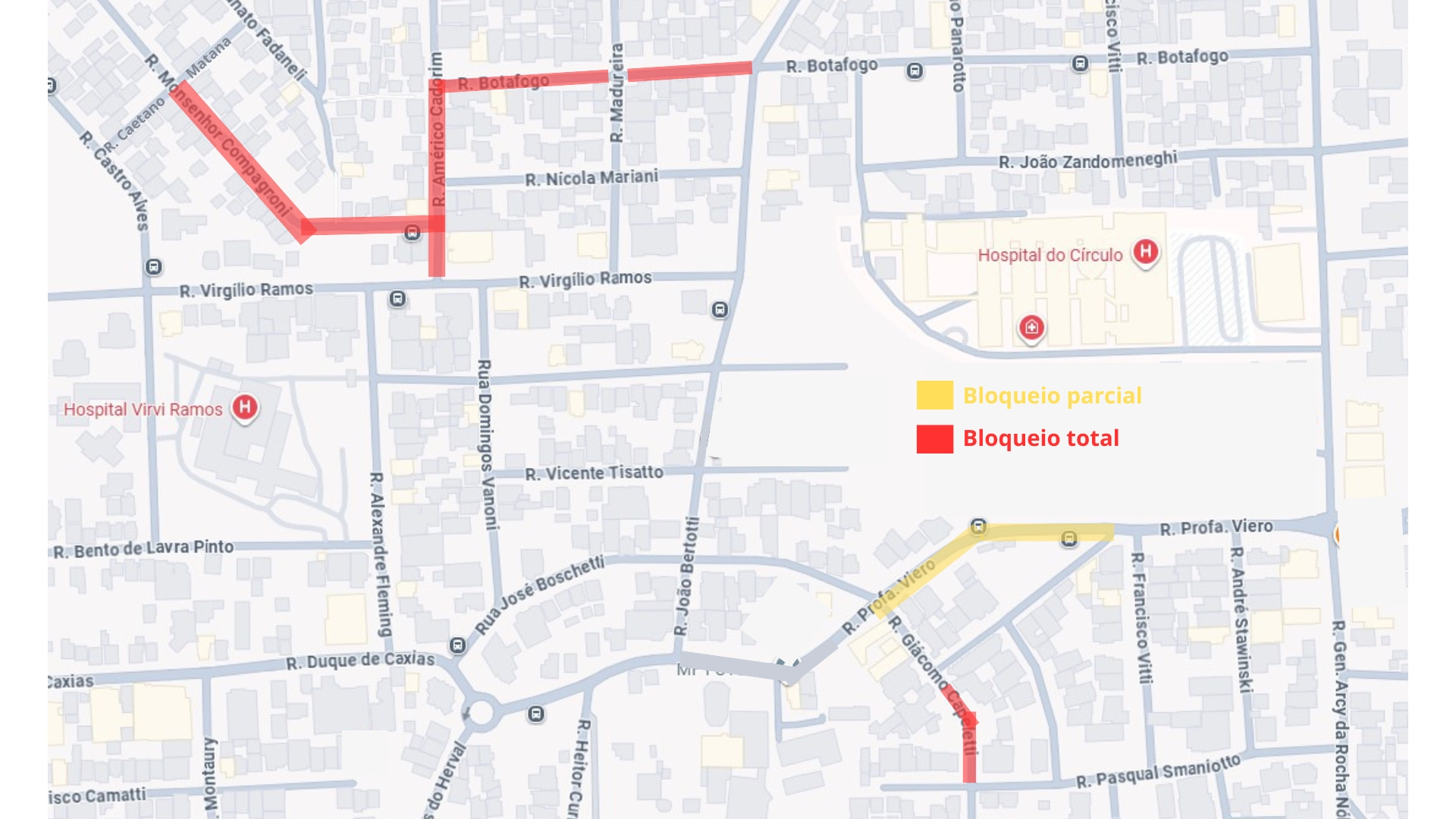 Trechos das ruas Giácomo Capeletti, Américo Cadorin, Botafogo e Monsenhor Compagnoni terão bloqueios totais