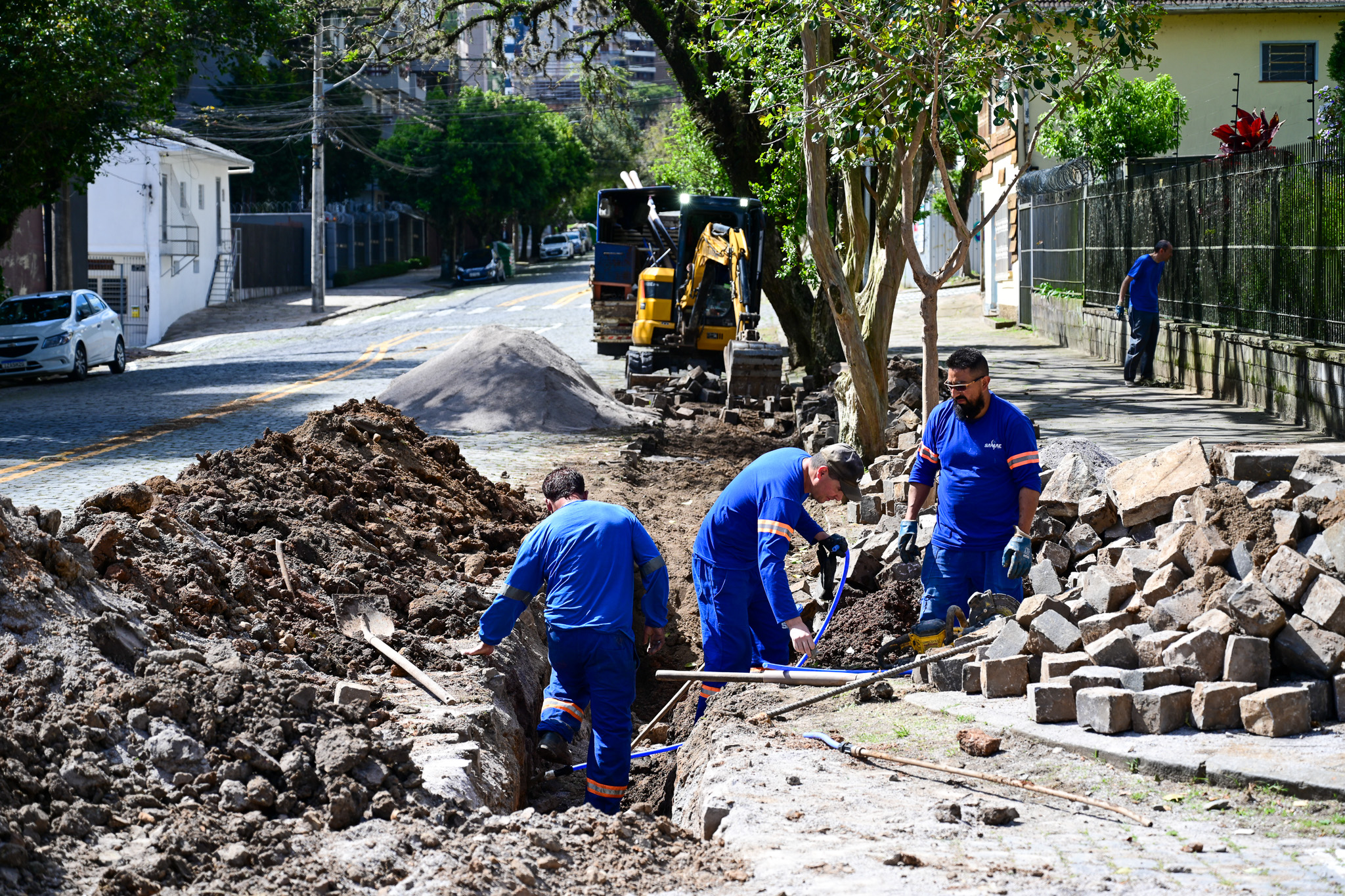 O Serviço Autônomo Municipal de Água e Esgoto (Samae) executa, de forma simultânea, duas obras na rua Dr. Montaury, no Centro de Caxias do Sul: a substituição da tubulação de água, que é antiga, e a implantação de rede de esgotamento sanitário. As intervenções ocorrem no trecho entre as ruas 25 de Julho e a José Jaconi, nas duas laterais da via.