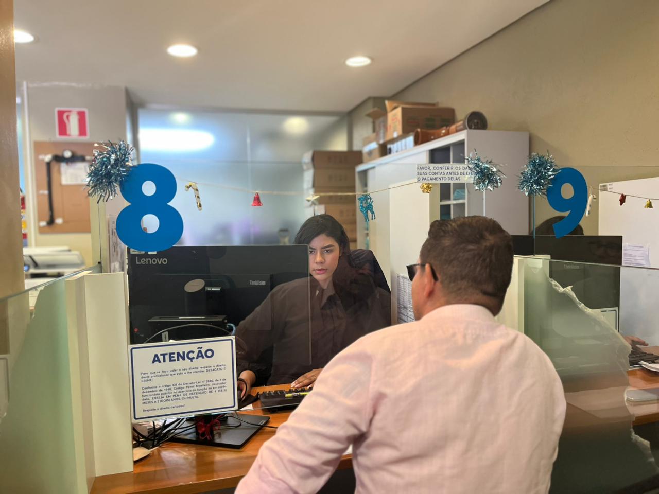 no Guichê 08, com a atendente especialista Ester Brasil: