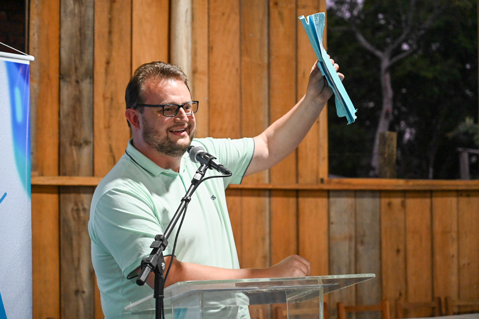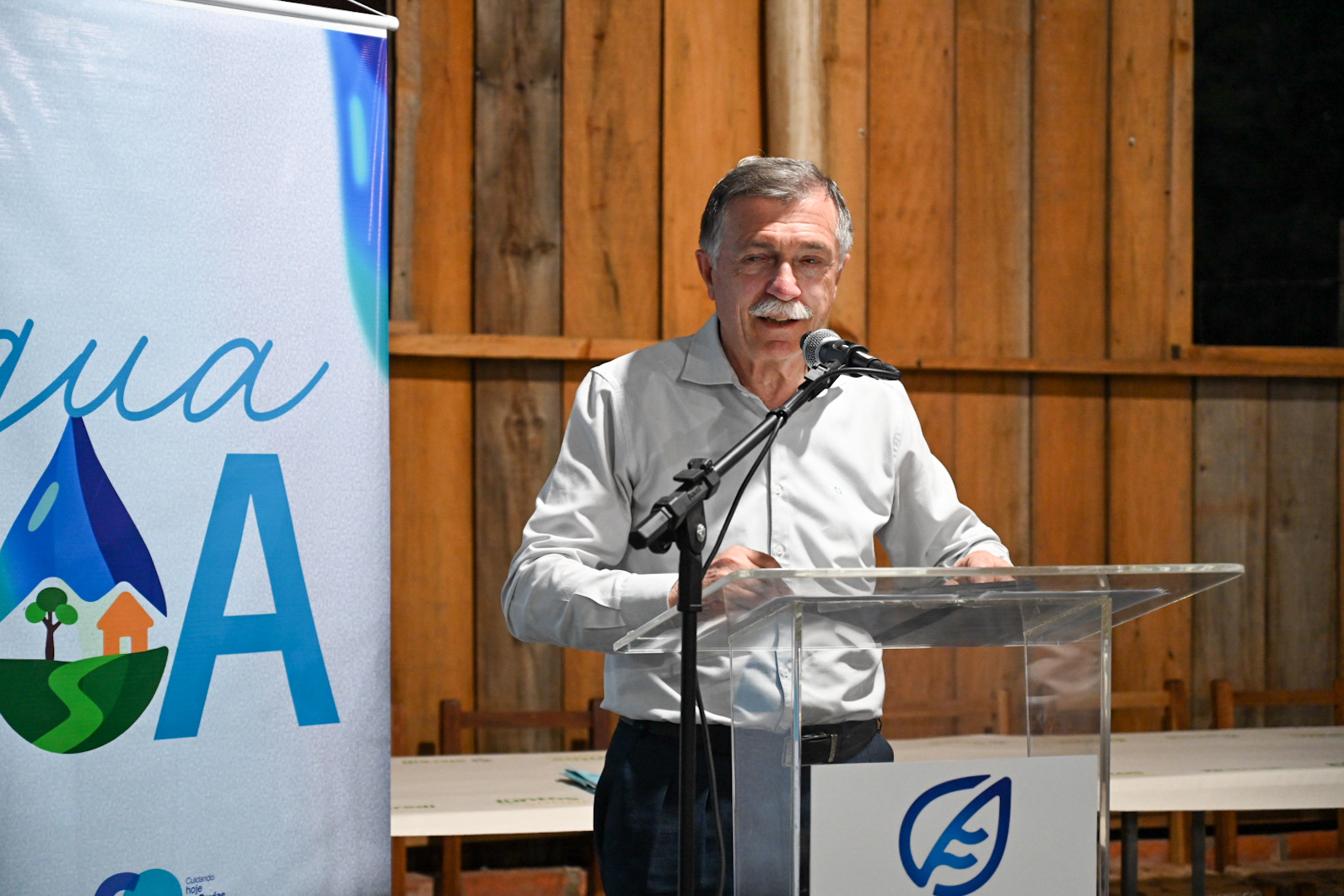 no salão da comunidade de Mangueirinha, o diretor-presidente do Samae celebrou