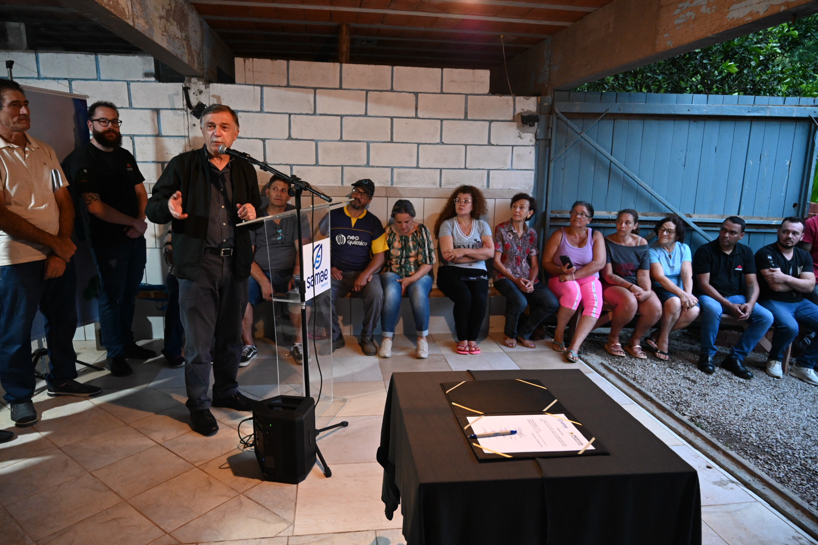 “Se vocês olharem olho no olho, saberão o que é o sofrimento de ficar sem água, principalmente na época da seca. Era criança tomando água contaminada, as fontes contaminadas, mas a gente tomava igual, fazer o quê? A gente botava cloro. Mas, e a quantidade de cloro? Não sou engenheiro químico para saber quanto. Na época da seca o riozinho era um fio de água. Para nós é um presente”, contou De Toni, emocionado, durante a assinatura da ordem de início da obra, na noite de segunda-feira (12), na garagem de sua casa às margens do arroio Pinhal.