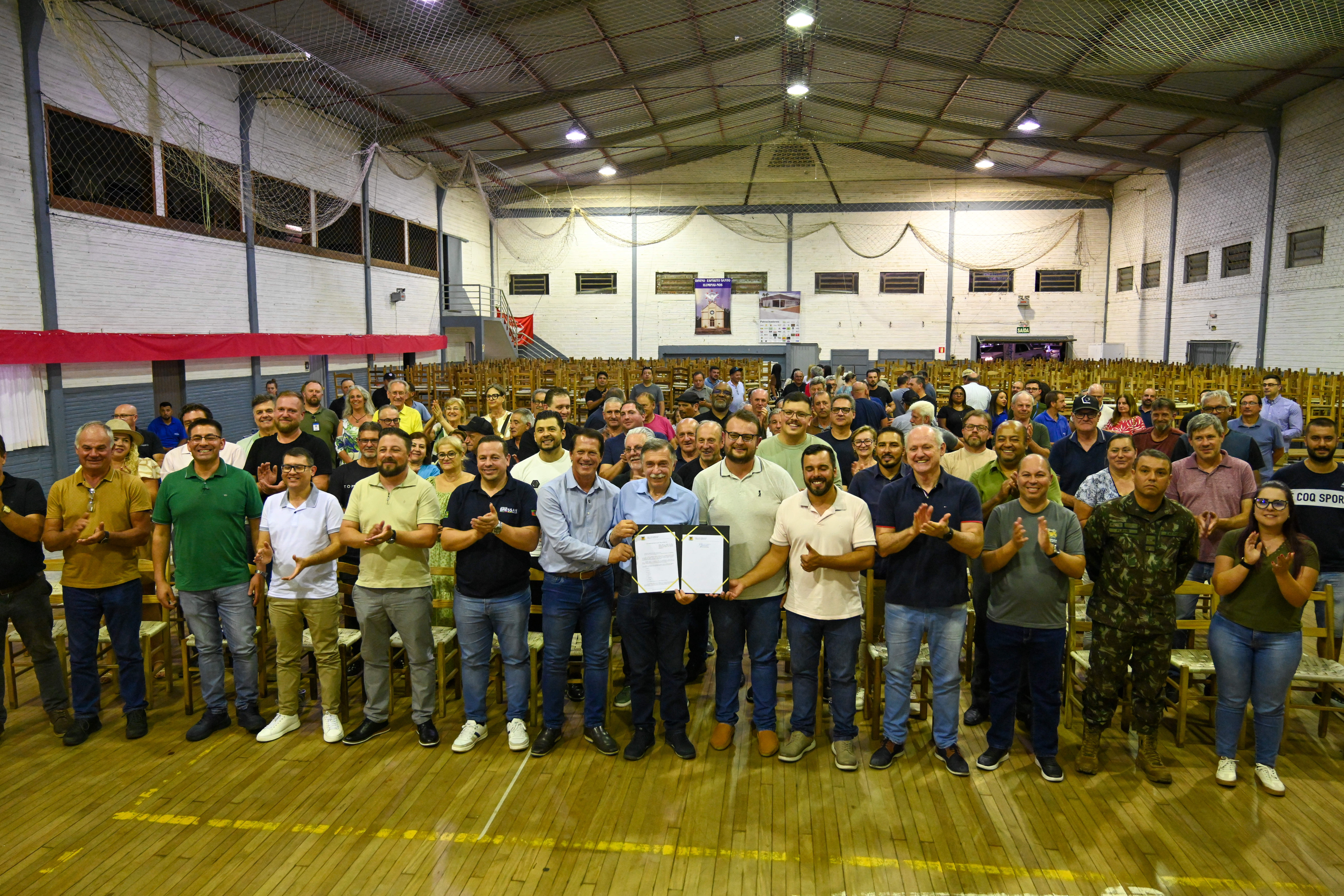 Socialmente justa, economicamente viável e ambientalmente sustentável. A frase do empreendedor Sandro Bossardi define a Nova Lei das Águas de Caxias do Sul, sancionada na noite desta quinta-feira (15/11) pelo prefeito Adiló Dodomenico diante de mais de 100 pessoas no Salão Paroquial de Vila Seca. Aprovada pela Câmara de Vereadores em janeiro, após quase um ano de estudos técnicos e discussões com a comunidade, a Lei Complementar 812 passa a valer como o principal marco regulatório para o uso e a ocupação do solo nas áreas que garantem o abastecimento do município.