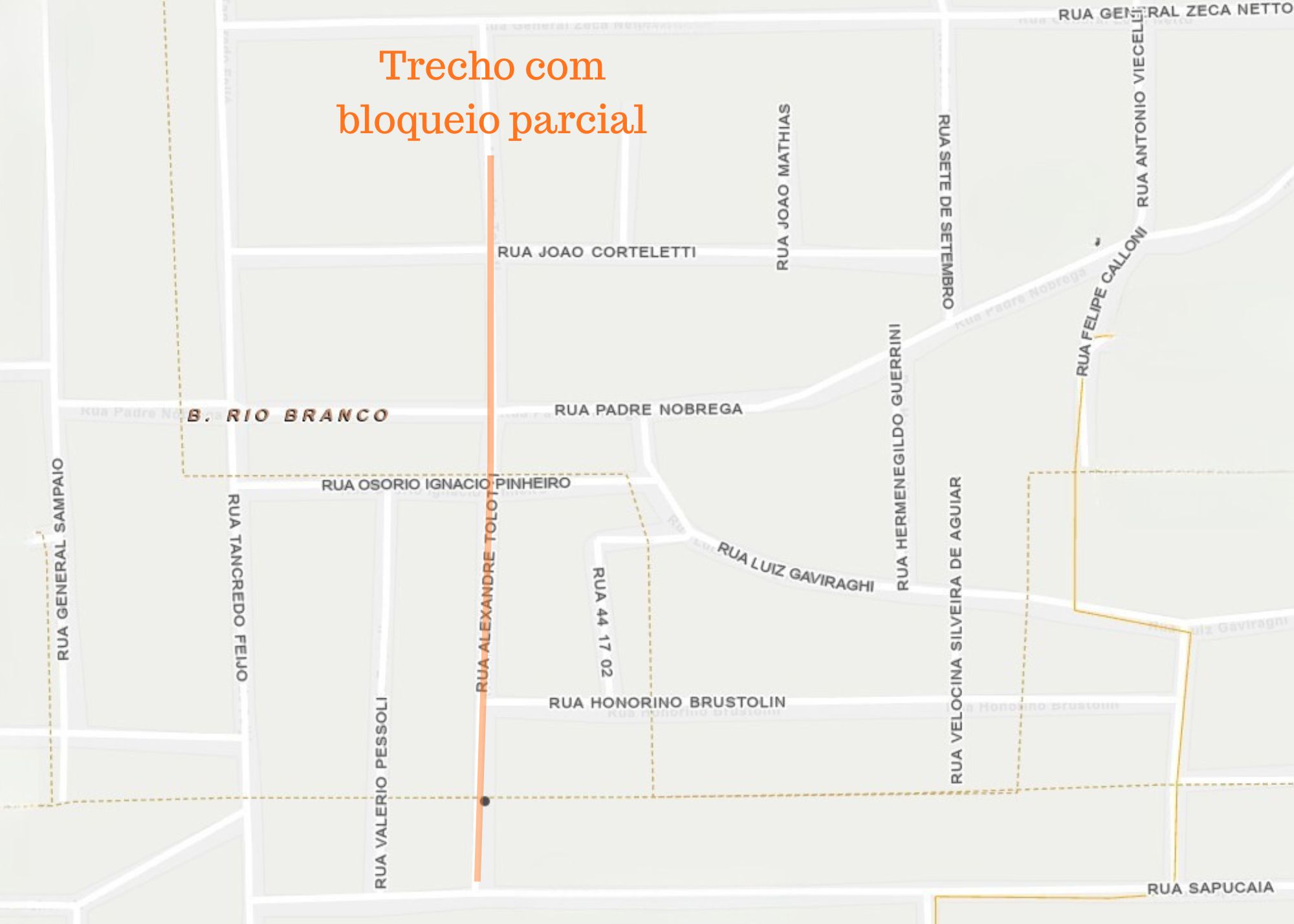 • Rua Alvicio Oliveira, entre Ernesta Coleone e Zeferino Scussiatto: sem bloqueio.