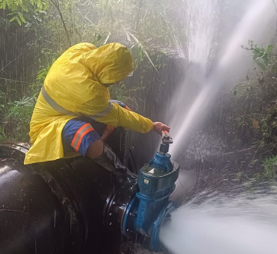 Válvula de descarga de adutora de água bruta foi consertada pela manhã