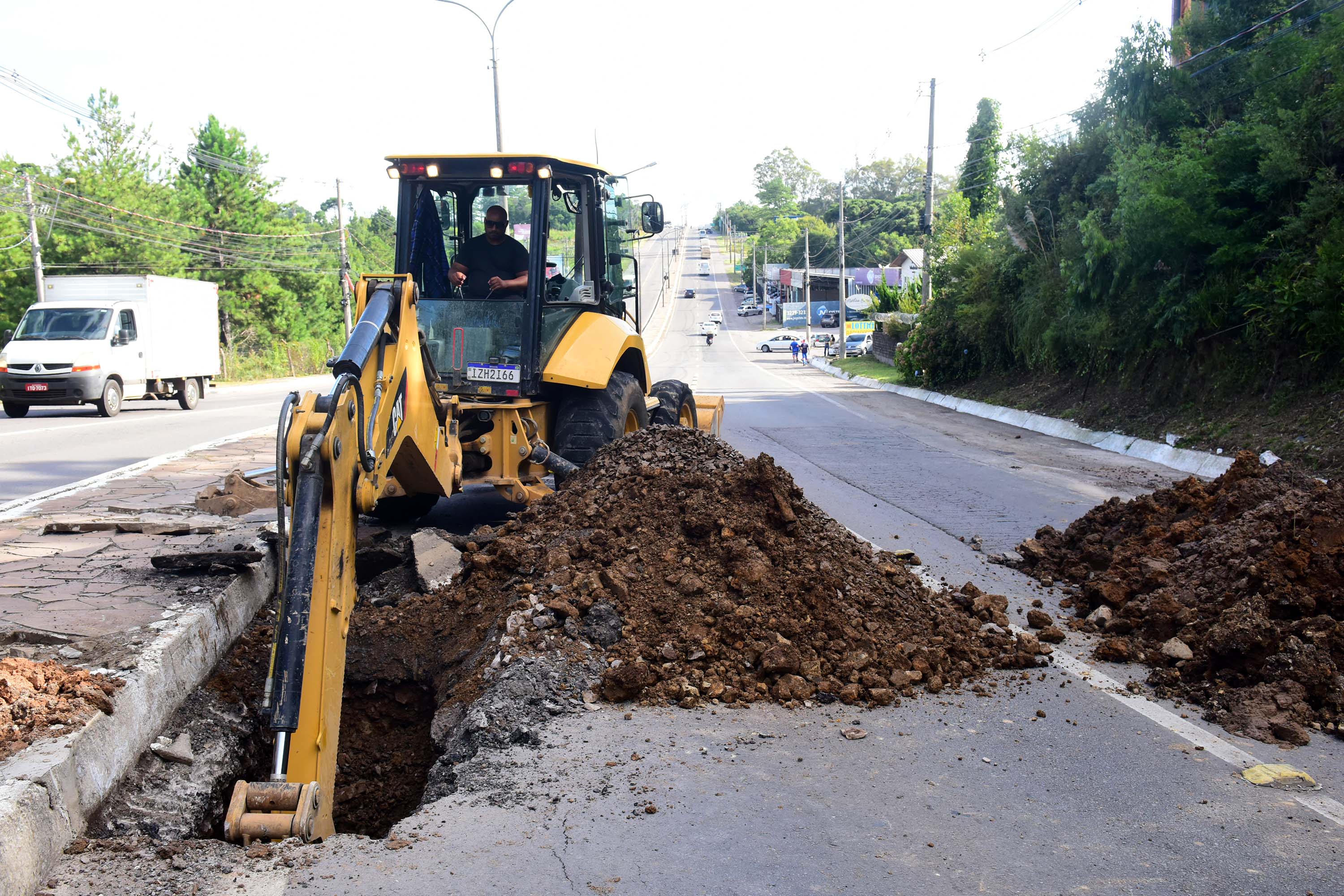 Samae trabalha em conserto de adutora na BR-116, sentido Ana Rech - Centro