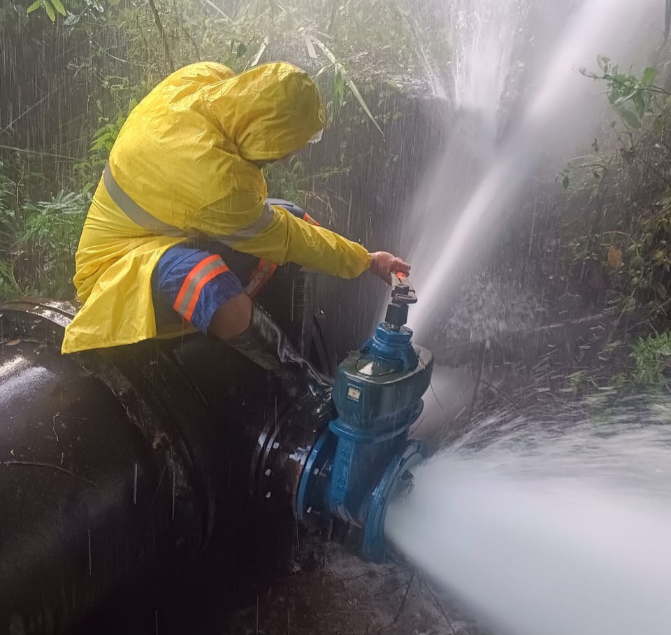 Válvula de descarga de adutora de água bruta foi consertada pela manhã