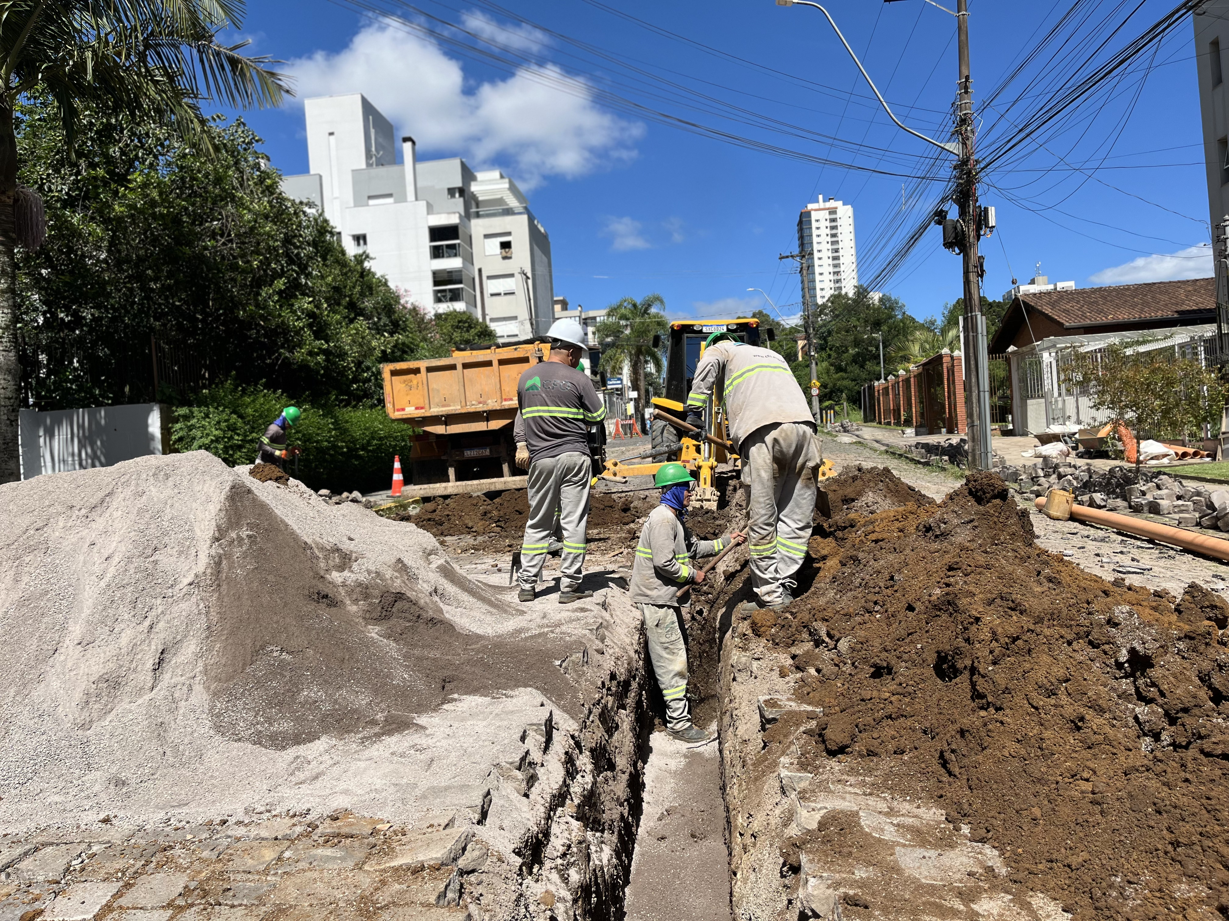 Extensões de redes de esgoto e de drenagem ocorrem nesta semana também nos bairros Charqueadas, Exposição, Desvio Rizzo, São Leopoldo e Universitário.