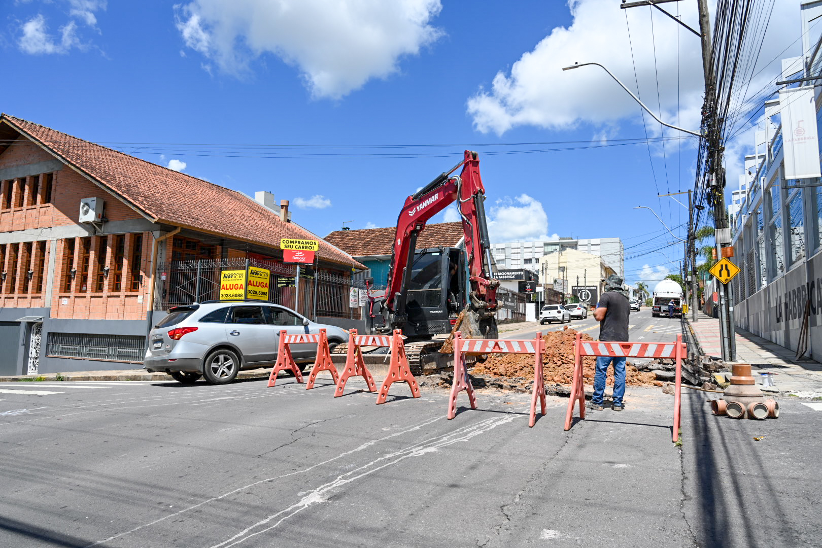 • Rua Alvicio Oliveira, entre Ernesta Coleone e Zeferino Scussiatto: abertura de vala para assentamento de rede de esgoto, sem bloqueio;
