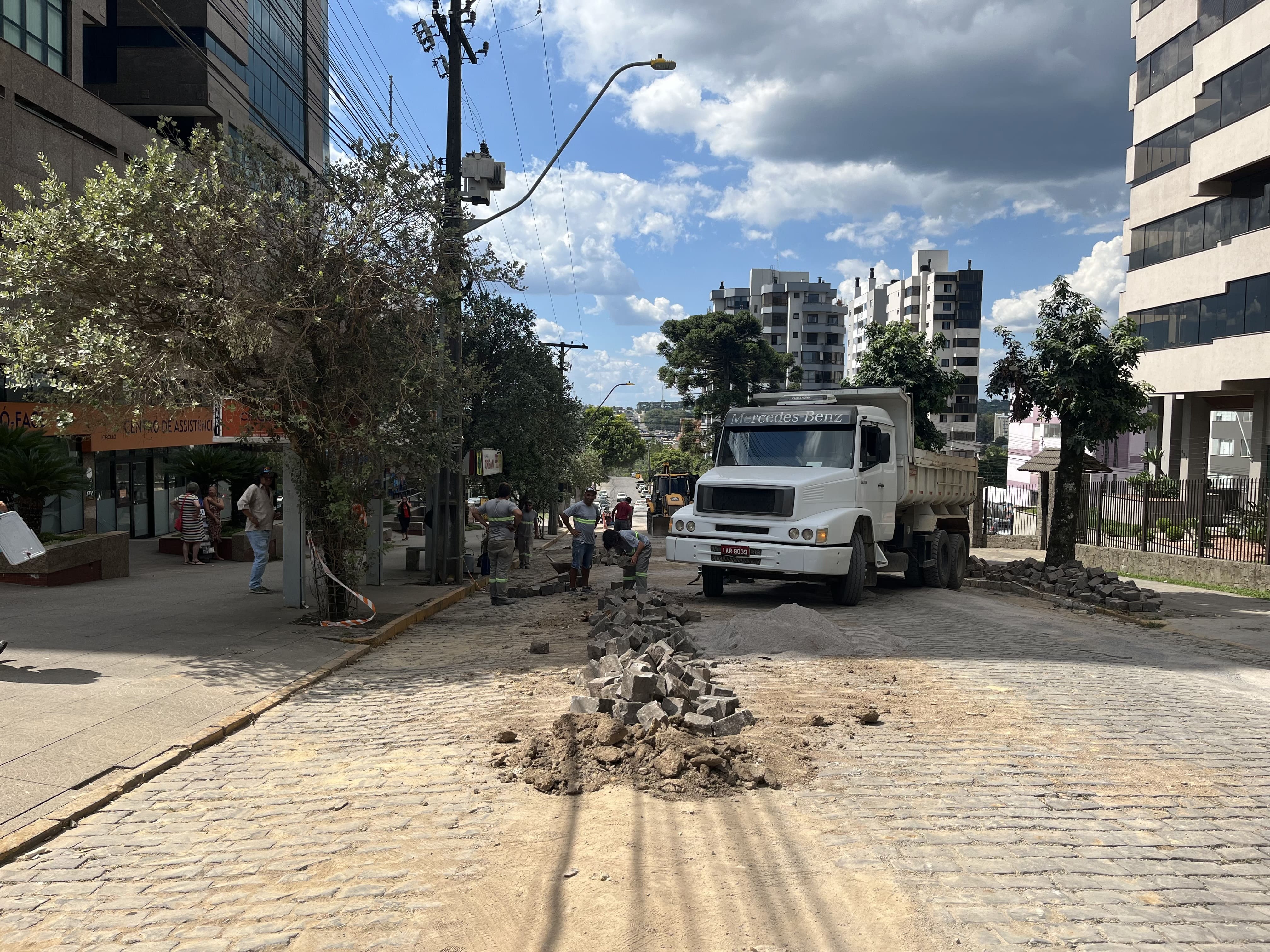 Ainda neste sábado, prossegue a repavimentação da rua General Arcy da Rocha Nóbrega, entre Travessão Prévidi e Rua João Zandomeneghi, próximo ao Hospital do Círculo. A via foi aberta para implantação de rede de esgoto.