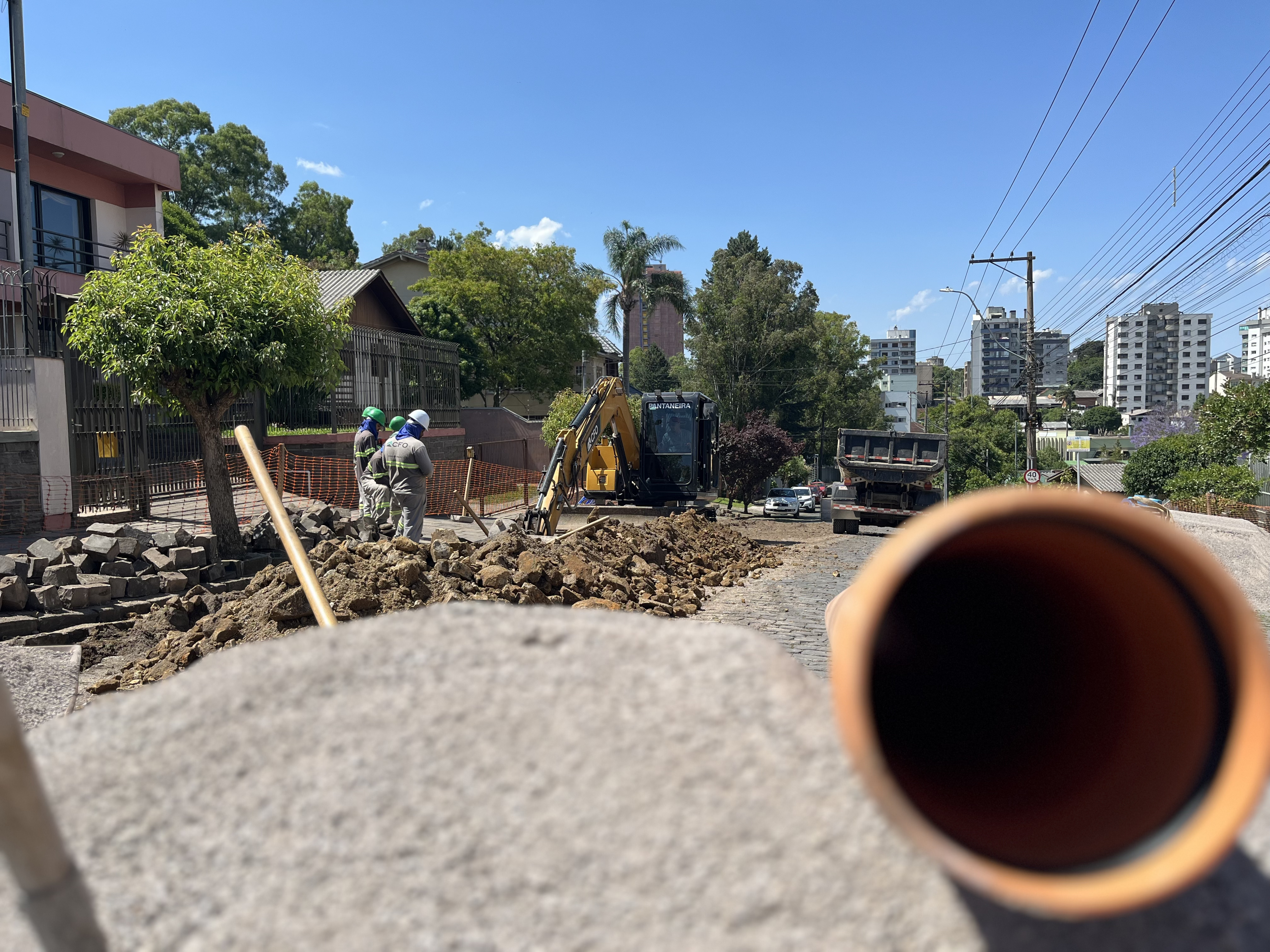 A implantação de uma rede coletora de esgoto no bairro São Leopoldo, na região limítrofe ao Rio Branco, exige o bloqueio total da Rua Maurício Cardoso e de um trecho da Pinto Bandeira...